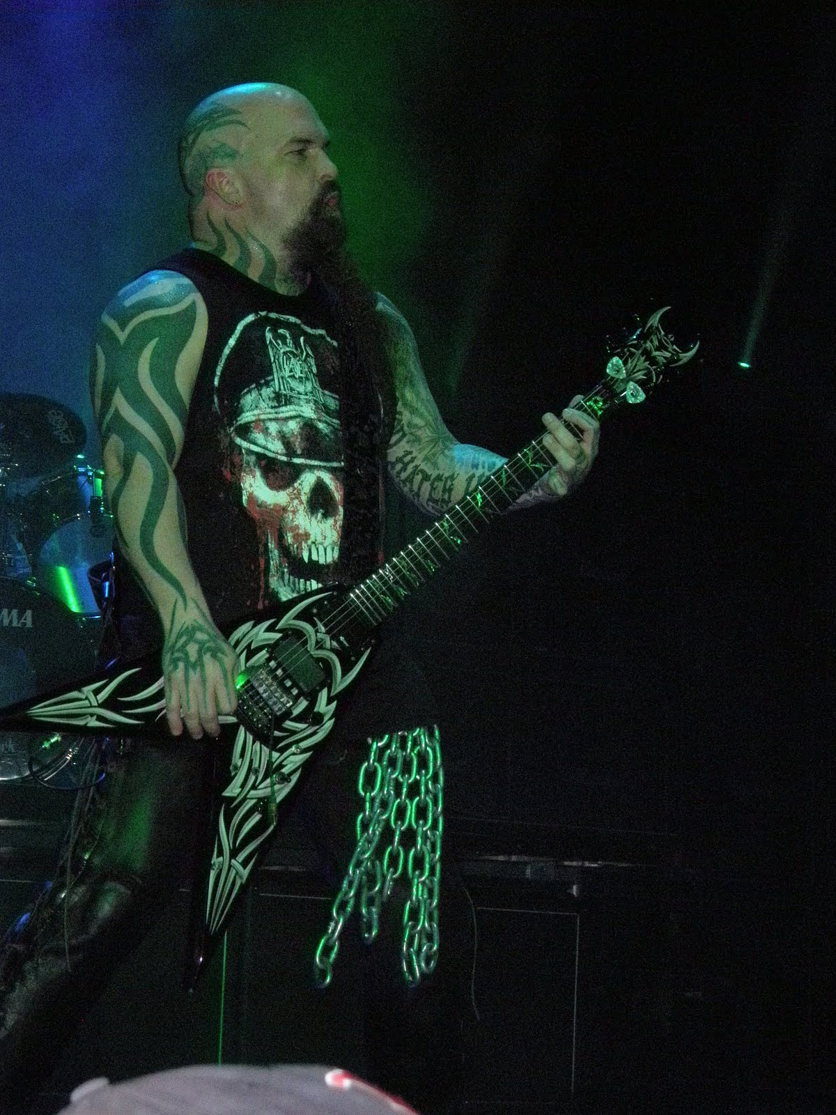 Kerry King has a tremendous amount of tattoos, most of which are tribal in nature, plus other tattoos including a cross, two dragons and a ghoulish creature on the back of his head.